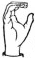 На ћирилици написано РАДЕ САНДО састоји се из 9 слова [?]. Исписано ћириличном једноручном азбуком за глувонеме:
